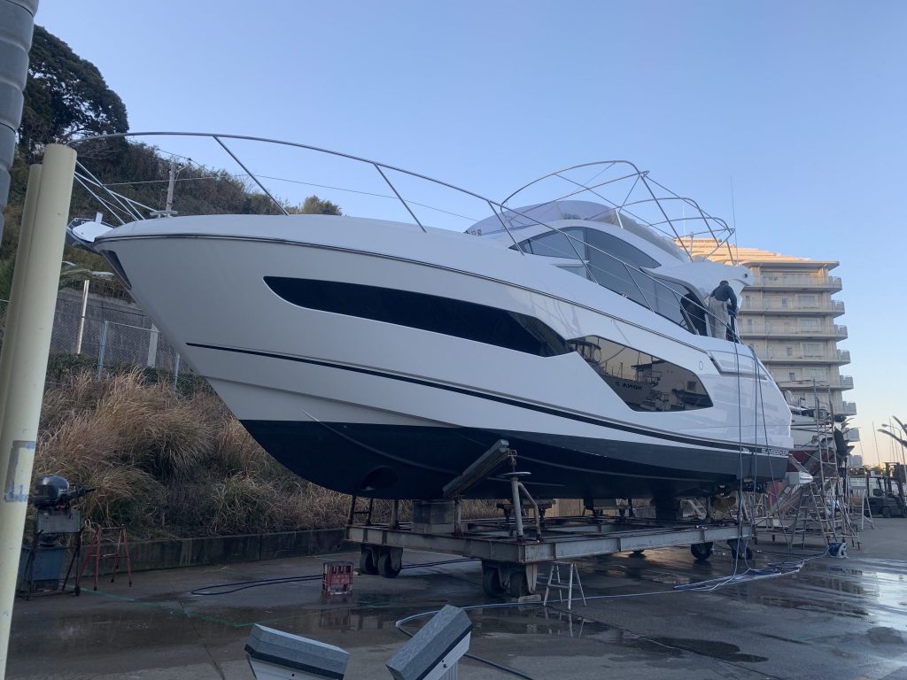 ボートショー出展のビッグボートを準備。