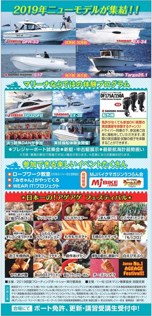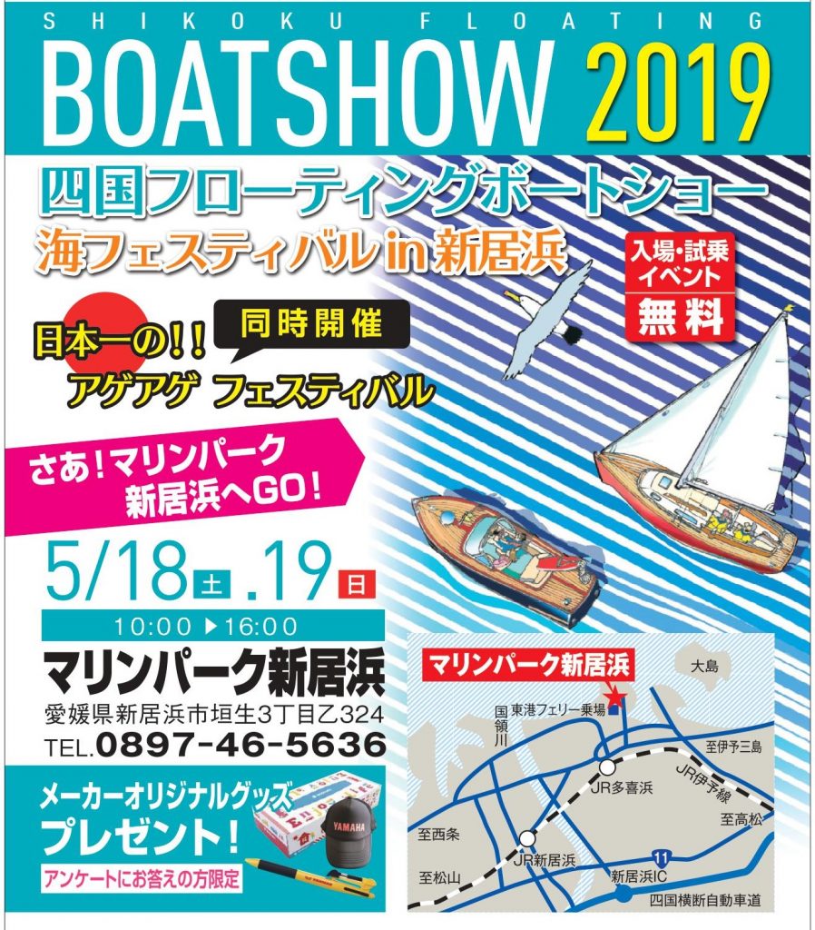 5/18〜19、四国ボートショー2019がマリンパーク新居浜で開催されます!