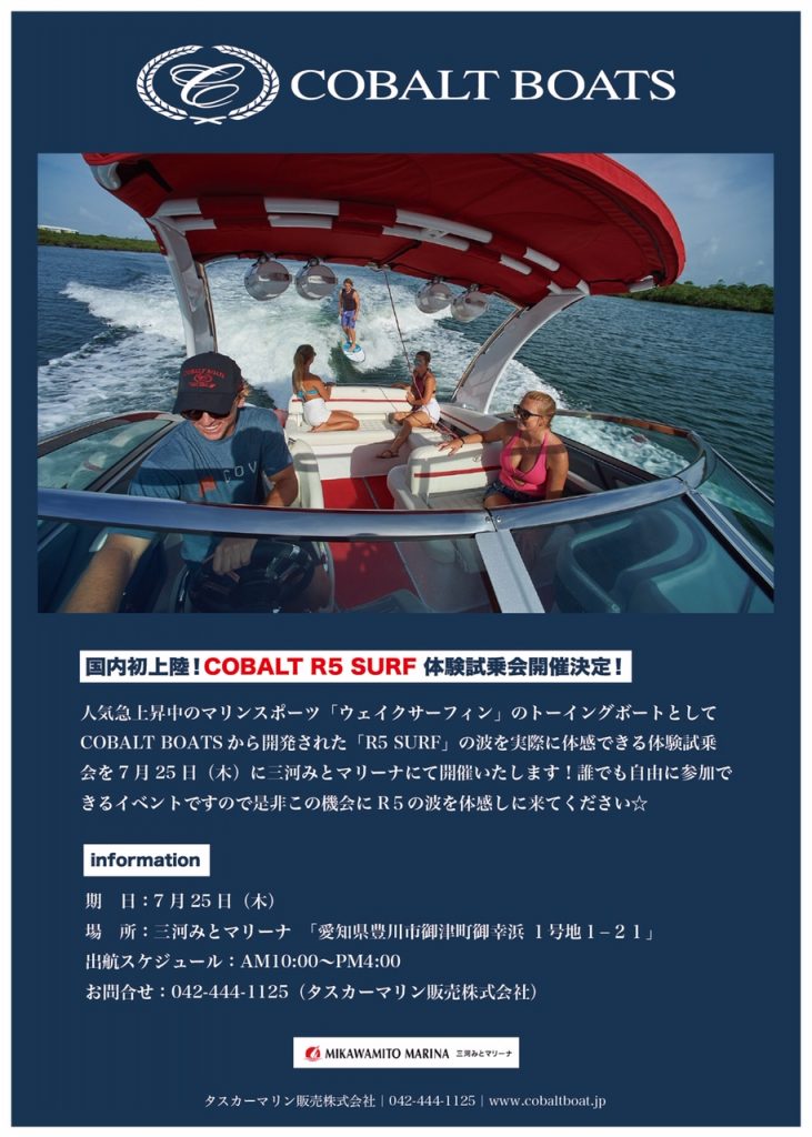 三河みとマリーナでは本格的なウェイクサーフィンボートの試乗会を行います