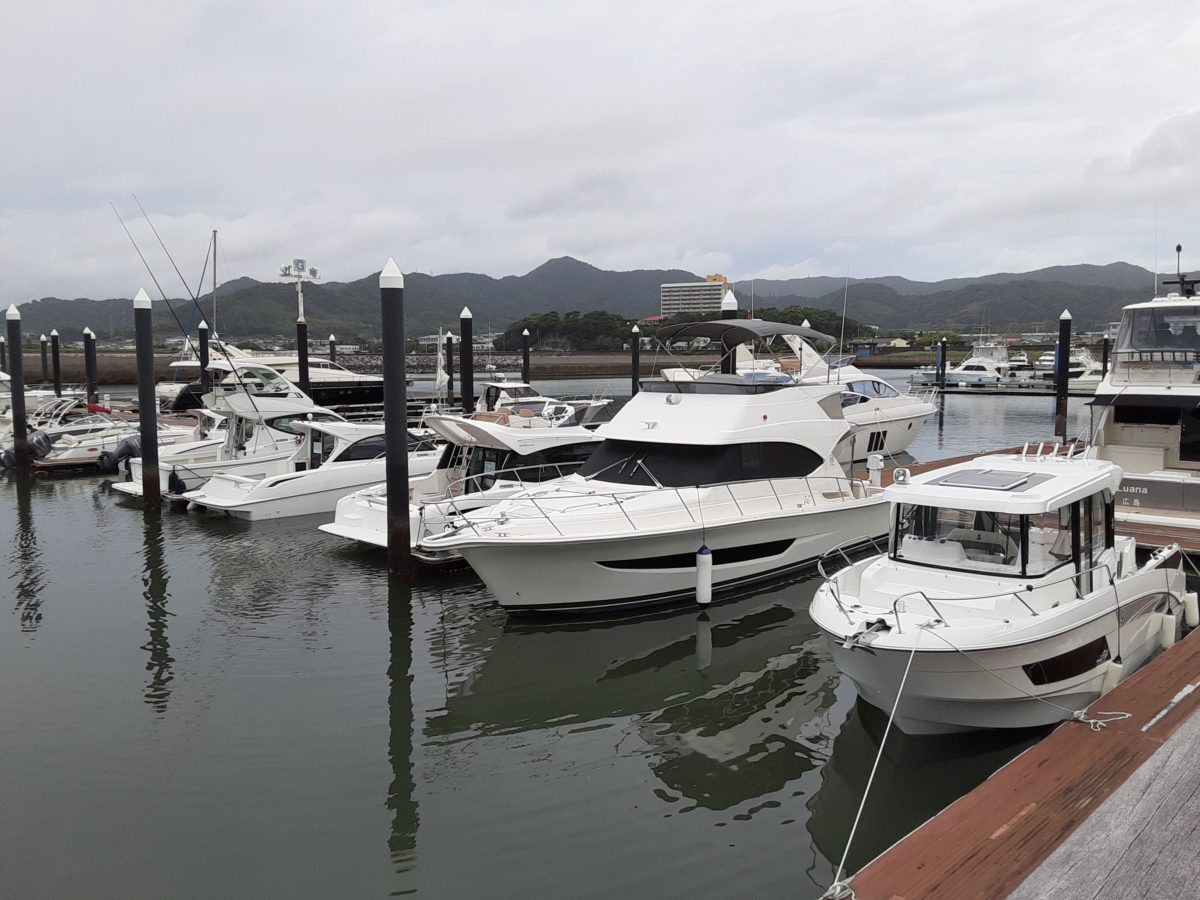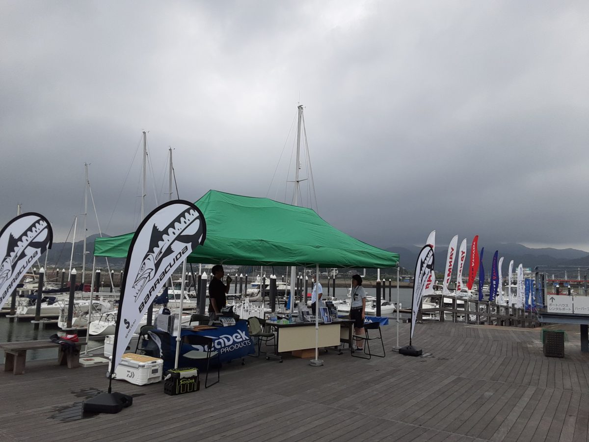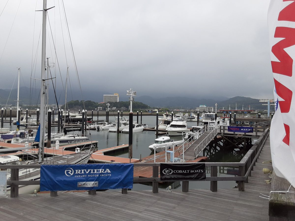 本日は曇天の空ですが、三河みとマリーナにて合同展示会を開催中です!