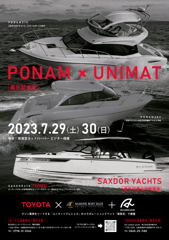 TOYOTA × UNIMAT + Ad custom yacht展示試乗会を同時開催します!