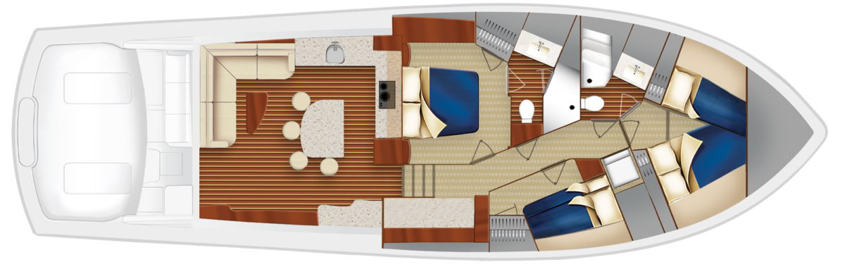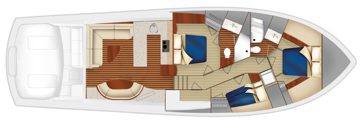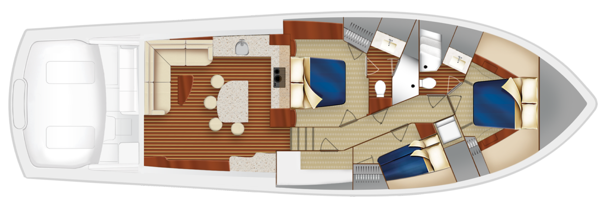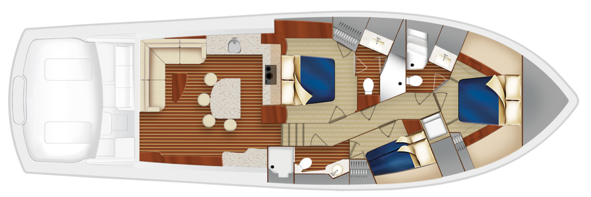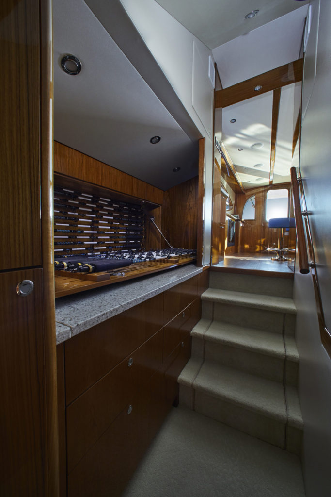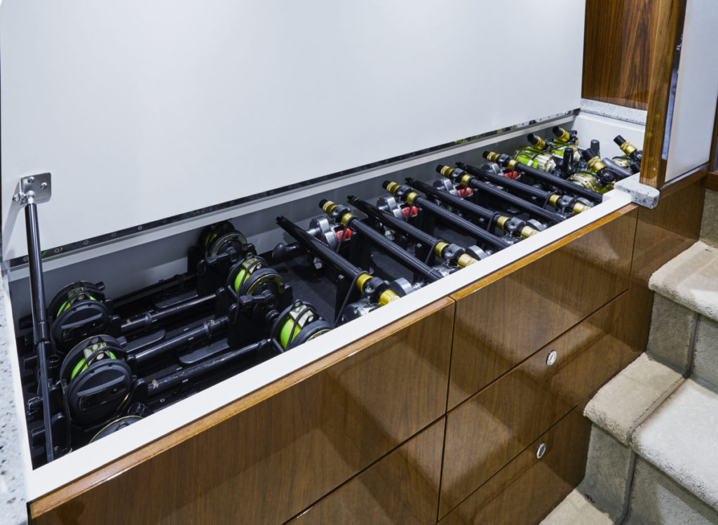 GT59は、統合されたリギングと頑丈な収納用ボウで、トーナメント対応です。また、室内に非常に広々とした3式客室/2ヘッドの配置、またはオプションのタックルセンターまたはサードヘッドの選択肢が備わっているように設計されています。