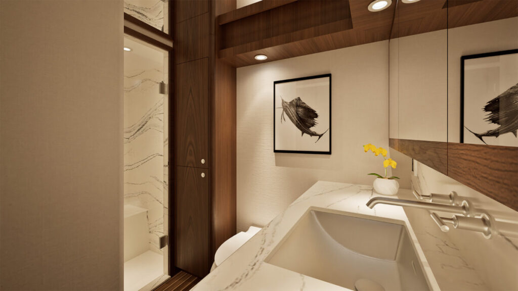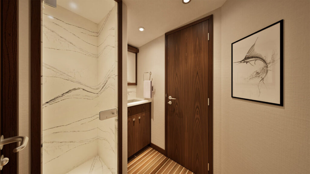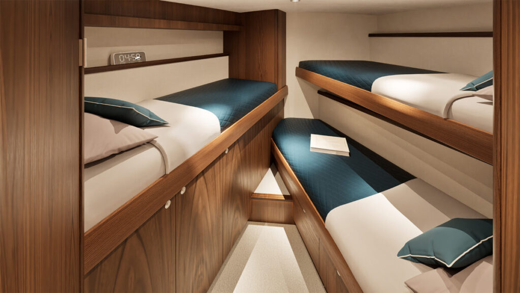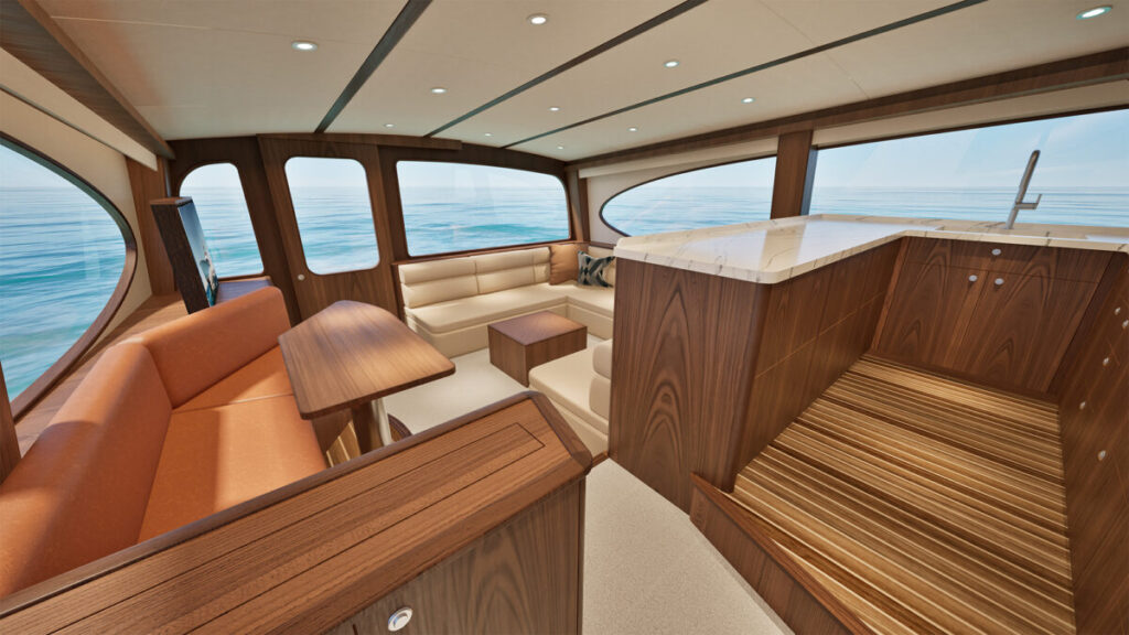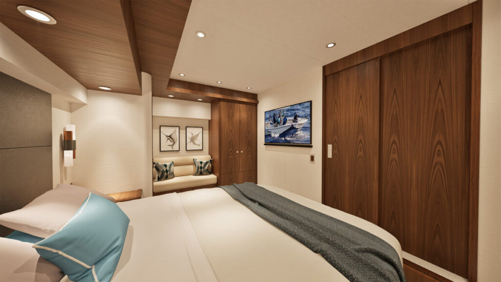 ラインアウト時には、広々とした洗練された室内キャビンスペースが、岸へ戻りたくなるのを難しくしている。完全な居住区と十分な娯楽スペースがあるため、しばらく待つ必要がなくなるかもしれません。