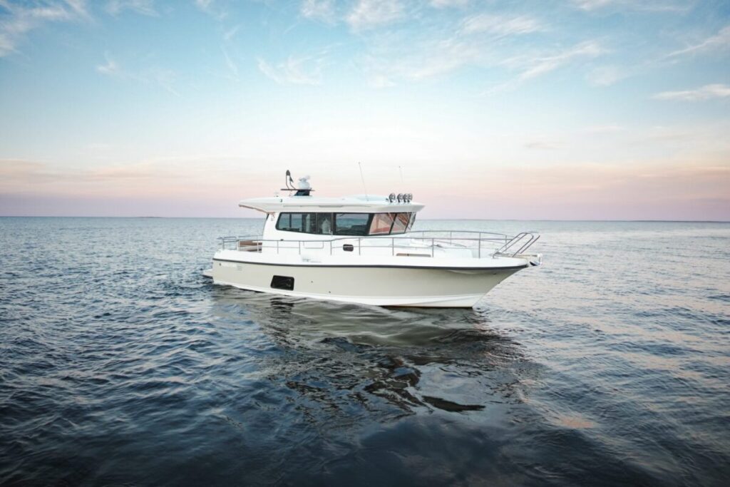NORD STAR 36+ は、モダンなデザインと室内の豪華な雰囲気を兼ね備えたウォークアラウンド キャビン スポーツ クルーザーです。 完成されたディテールと高品質の素材は、海に浮かべている時も走行中も両方で注目を集める印象的な外観です。 ※フライブリッジはオプションです。