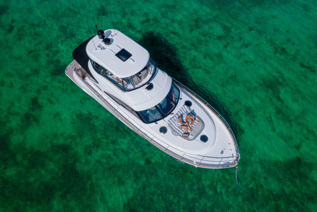 ガレーからコックピットまで、一段階のリビング。洗練された下層司令部で、専用のゲスト席を備えています。