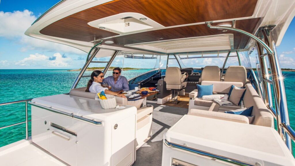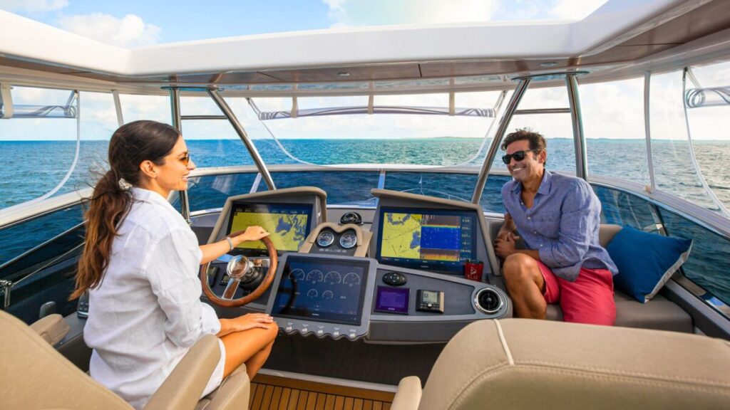 飛ばし屋の舵を前方に発見してください。デイブリッジの下部の舵と広々としたヘルメットは、最新式のナビゲーション補助機能、簡単なタッチスクリーン操作、そして楽なジョイスティック操作を備えています。ボルボ・ペンタのインボードパフォーマンスシステム(IPS)は、高揚感と優れた経済性を実現しています。