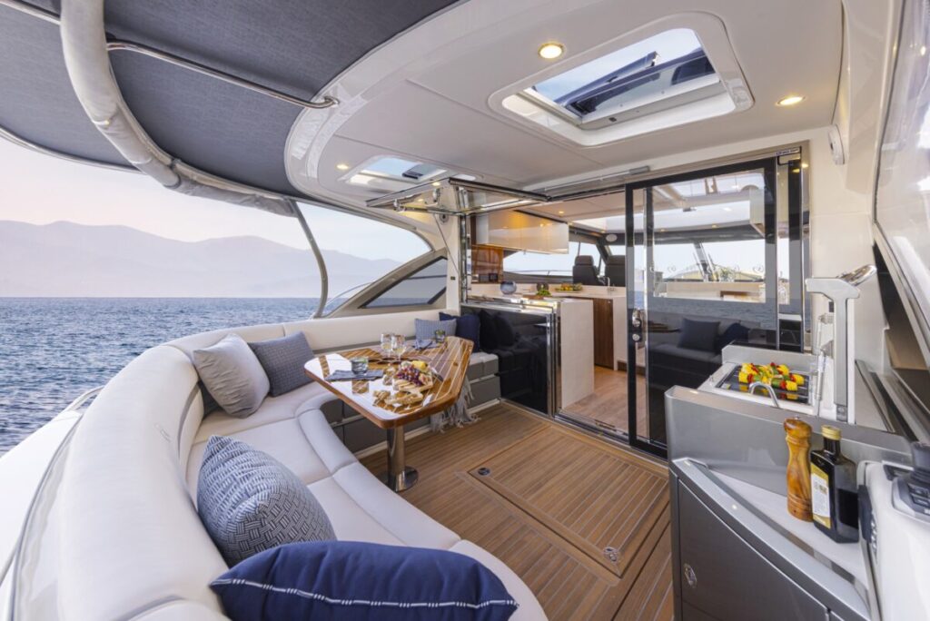 Riviera の Sport Yacht コレクションのデザイン哲学は、「洗練されたスタイリング」、「豪華なシングルレベルの生活」、「伝統的な航海能力」という 3 つの必須事項を体現しています。2005 年に初めて発売されたこれらの世界クラスのモーター ヨットは、崇高なスポーツ ヨット ボート ライフスタイルを高く評価する所有者の忠実な支持を得ています。そして、2021年。次世代の新モデルが誕生しました。 Riviera の卓越性、革新性、職人技への献身的な成果です。 また、プラチナ エディションの 4600 スポーツ ヨットには、優れた設備とアメニティが備わっています。 より豪華で、きらめくカラーパレットと美学は、どの場面でも際立つことが保証されています。 高度な船体設計と最先端のボート製造方法により、4600 スポーツヨットには多くの印象的な機能が備わっています。パワーウェイトレシオの向上は、Riviera の伝説的なブルーウォーターパフォーマンスを反映して、燃料効率の向上を意味します。 現代的な新しい船体は、広々としたコックピット、豪華なサルーン、フルビームのマスター スイートを誇る広々とした 3 室のステートルームを提供します。