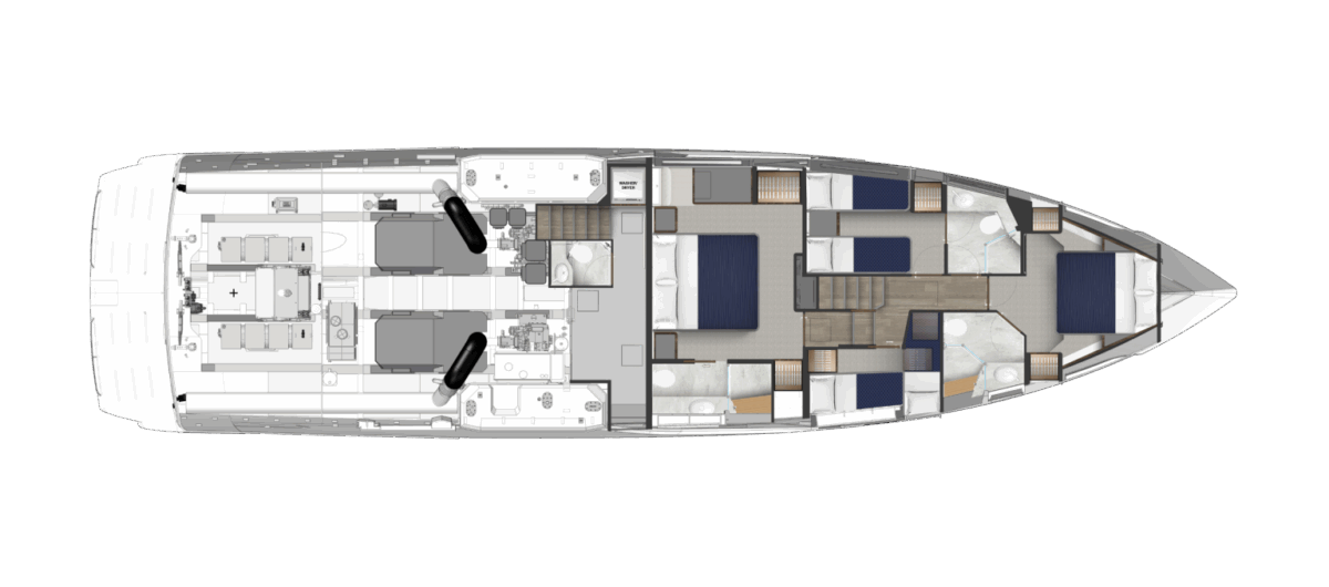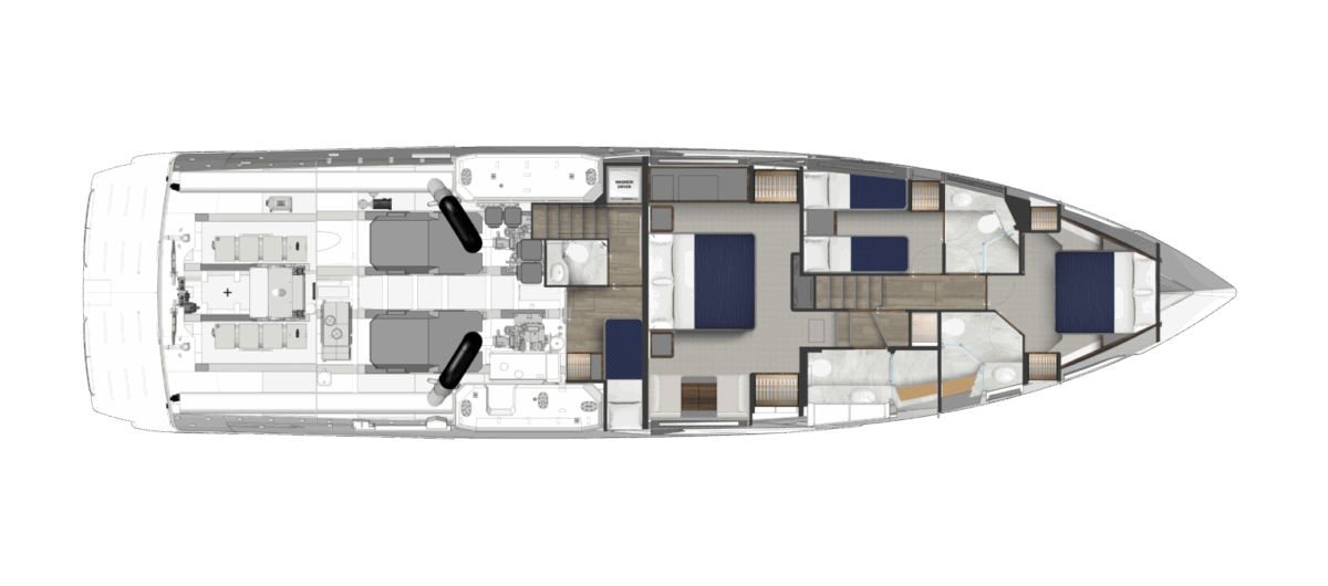 RIVIERAを代表する長距離ラグジュアリーモーターヨット72 Sports Motor Yachtの次世代モデルとなる72 Sports Motor Yacht Series IIが発表されました。あらゆる種類のウォータースポーツを可能にする広々としたオープンコックピットに加え、ウォークアラウンド可能なサイドデッキ、前甲板ラウンジとエンターテイメント、全天候型のアルフレスコデッキ、エアコン付きエンクローズドフライブリッジ、内階段のある豪華なサロン、最新鋭のヘルム、豪華なフルビームマスタースイート。多目的なユーティリティルームまたはクルーキャビンを有するSeries IIは、タイムレスな美しさの中に卓越した機能性も備えた新モデルです。
