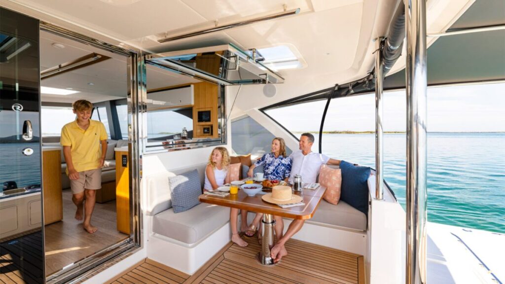屋外デッキは、サルーン級の居住面積を実質的に3分の1まで引き上げます。