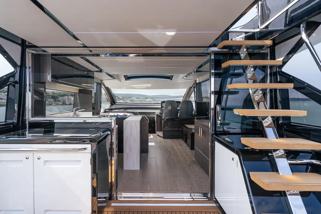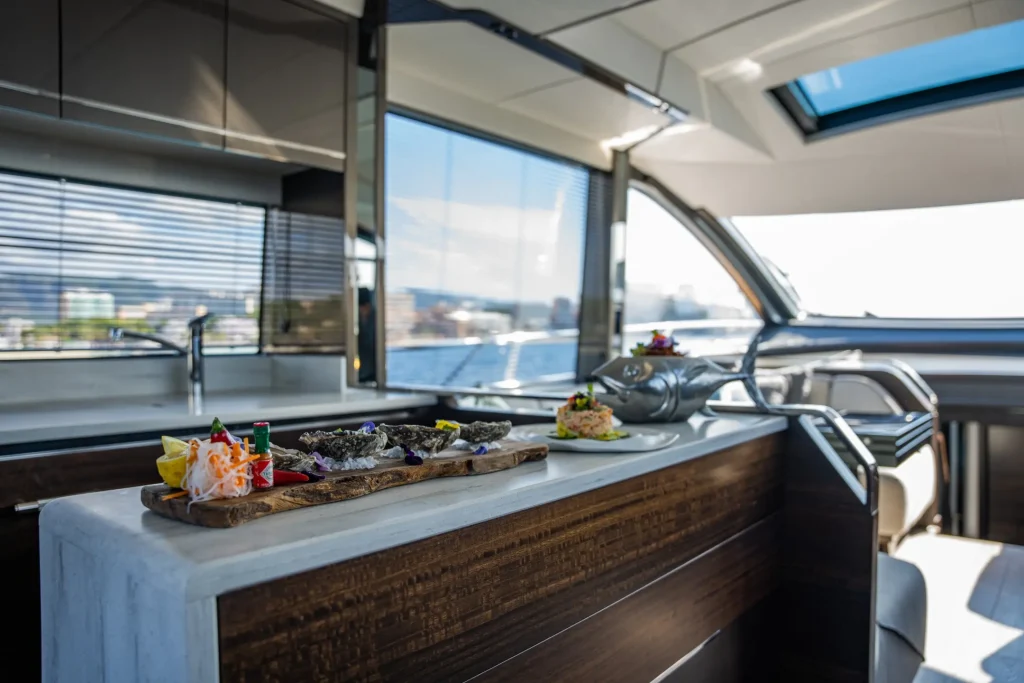 SunseekerがおススメするFAMOUS FIVEシリーズの1つ、”65 SPORT YACHT”。 滑らかなカーボンファイバーの仕上がりと光沢の輝くステンレススチール。65スポーツヨットはこれまで築き上げてきた伝統的な部分と高度な技術をバランスよく組み合わせたボートになりました。 フルビームのマスタールームを含む3キャビン構成で、最大7名が宿泊できます。なお、クルーキャビンはテンダーガレージの前方にあります。 海へのダイレクトアクセス、バー、冷蔵庫、BBQセット、シートと”ビーチクラブ”パッケージは装備充実。水辺での憩いの一時を演出します。 オープンウォーターでも35ノットをマーク。ドライバーはハンドルから直にハイパフォーマンス性を感じ取れるでしょう。