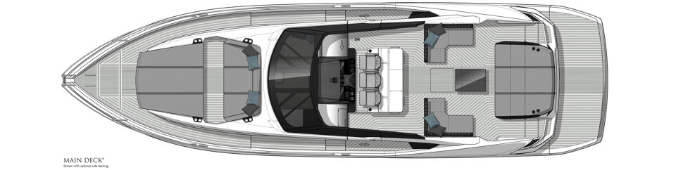 さらに埋め込み式の照明、湾曲した木材、ラッカー仕上げのすべてが、乗った人を心から喜ばせるプレミアム感たっぷりの仕上がりです。上部の広大なスクリーンから光があふれ、必要に応じて電動ブラインドが陰影をダイナミックに演出します。フォワードは、専用バスルーム、布張りのサイドユニット、ワードローブユニットを備えたVIP キャビンです。大きなベッドがあり、インテリアにはさまざまなスタイリングパレットがあり、すべてのオーナー様にカスタマイズされたオリジナルの雰囲気を提供します。後部は、スライド式ベッドを備えたマスターキャビンで、ダブルもしくは2つのシングルベッドと広々とした専用バスルームを備えます。ブラックラッカーパネルがこのメインキャビンを囲み、贅沢な雰囲気を作り出しています。スーパーホーク 55は、体験するすべての人に、贅沢さとスピードと敏捷性のスリルを提供します。