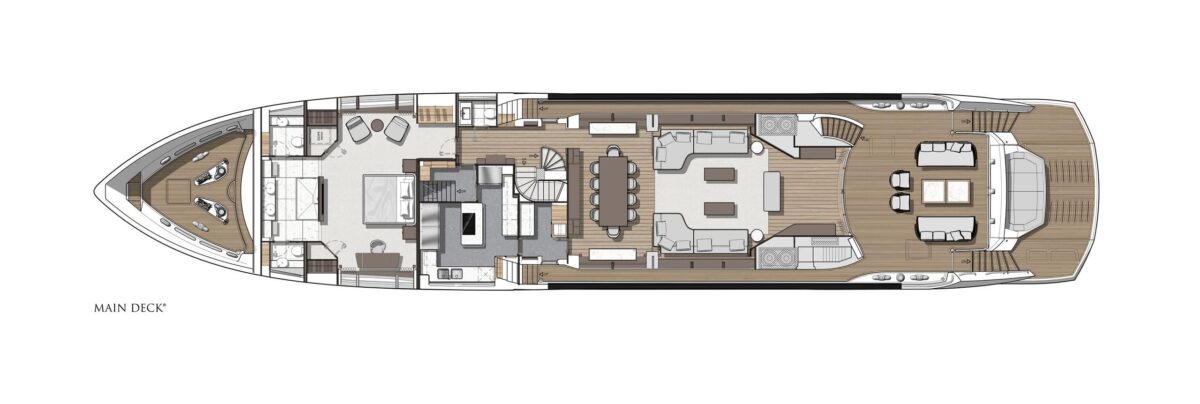 134スーパーヨットは、細長い上構造のライン、大胆な新しい船体ガラス、そして水に権威を漂わせる拡張されたハードトップを備えた、積極的な外観を実現しています。